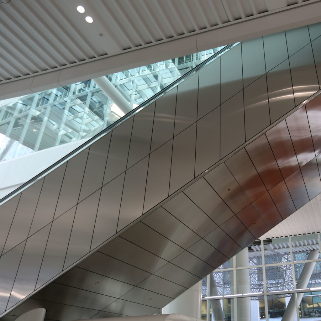 Extending more than two city blocks, the Transbay Terminal represents the single largest use of high-end architectural metals in the Bay Area. This project required the installation of more than 40,000 square feet of orange-painted 1/8-inch panels fabricated by Architectural Systems, Inc. of Missouri.